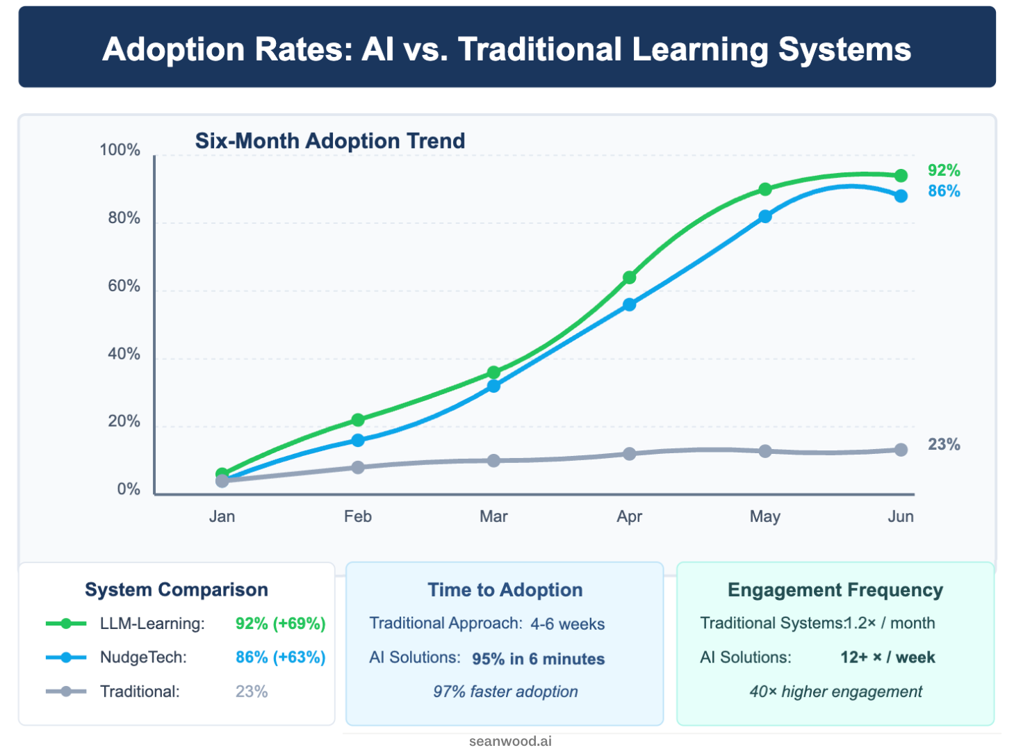 It’s not just having AI capability that makes it work, it's effective delivery. Smart Nudges and LLM-driven learning are powerful alone, but together they create multiplication, not addition.