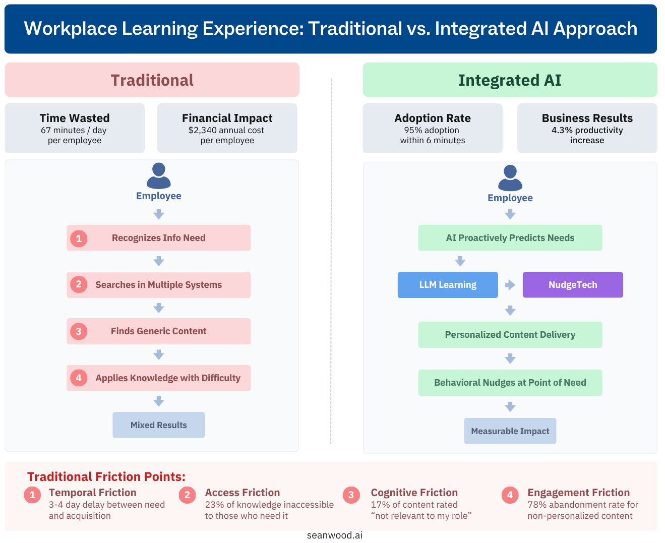 We're at an inflection point in how organizations support employee performance. The old models - traditional LMS platforms, static knowledge bases, periodic training - simply can't keep pace with today's dynamic work environments. The future belongs to companies that master the shift from "pull" to "push" learning.